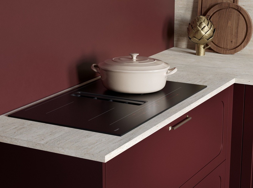 De Araldi – Ensor keuken combineert uitgesproken design met een warme, uitnodigende uitstraling. Het diepe robijnrood geeft de keuken een luxe en krachtige look, terwijl de lichte sesamkleurige bovenkasten zorgen voor balans en ruimtelijkheid. Het verfijnde lijnenspel in de fronten versterkt het moderne karakter en maakt deze keuken tijdloos elegant. Burgundy is dé trendkleur van 2026 en transformeert deze keuken tot een echte eyecatcher. In combinatie met zachte, neutrale tinten ontstaat een stijlvolle leefruimte die zowel indruk maakt als uitnodigt.
