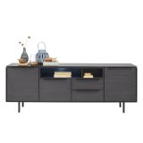 Het Nero dressoir heeft 3 deuren en 2 laden met softclose systeem, waardoor deze automatisch zachtjes dichtvallen. Achter de 3 deuren zit een legplank.