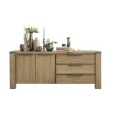 Dressoir Valvola geeft een warme, natuurlijke sfeer aan je interieur. Dit dressoir heeft 2 deuren en 3 laden en is afgelakt met een beits en matglans lak in een warme, bruine kleur. De kast is 190 cm breed en 78 cm hoog. De lades zijn voorzien van een softclose systeem, waardoor deze automatisch zachtjes sluiten. Achter de deuren, die uitgevoerd zijn met een magneetsluiting, vind je een vaste legplank. Genoeg ruimte dus om je spullen in op te bergen. De slanke, metalen handgrepen vallen mooi in de bovenkant van de frontjes en geven het dressoir een stijlvol, modern accent.