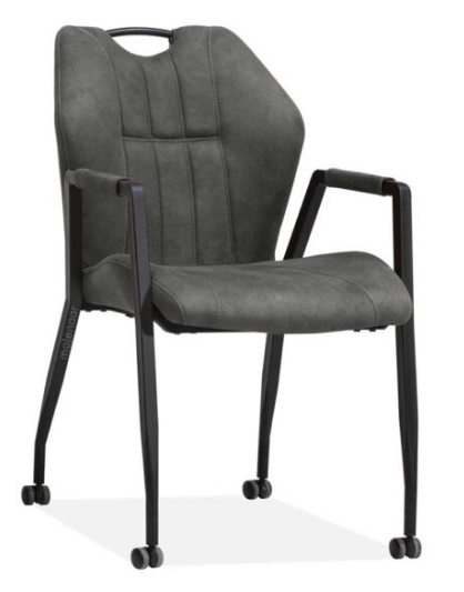 Eetkamerstoel Pobbe is een stoere stoel die goed kan worden gecombineerd met een eigentijdse inrichting. De stoel is bekleed met microvezel stof en er is de keuze uit de kleuren antraciet, cognac of groen. Het onderstel is van zwart gepoedercoat metaal en is voorzien van parketwieltjes.