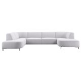 Op zoek naar een stijlvolle en comfortabele hoekbank? Dan is onze lichtgrijze hoekbank Pantini de perfecte keuze voor jou! De hoekbank is een prachtig voorbeeld waarin stijl en comfort samensmelten. Stijl in de vorm van de dunne "plint" in combinatie met de volle zitting en rugleuning en de zwarte metalen poten. De bank is bekleed met een lichtgrijs gemêleerde weefstof. Door het gebruik van verschillende garens en tinten ontstaat een licht meerkleurige kwaliteit met een ietwat grovere structuur die zacht en vol aanvoelt. In combinatie met de ronde vormen van de chaise longue en het eiland geeft dit de bank een trendy en zachte uitstraling.