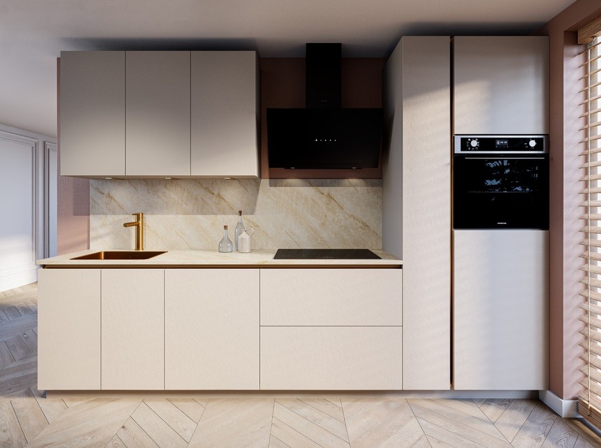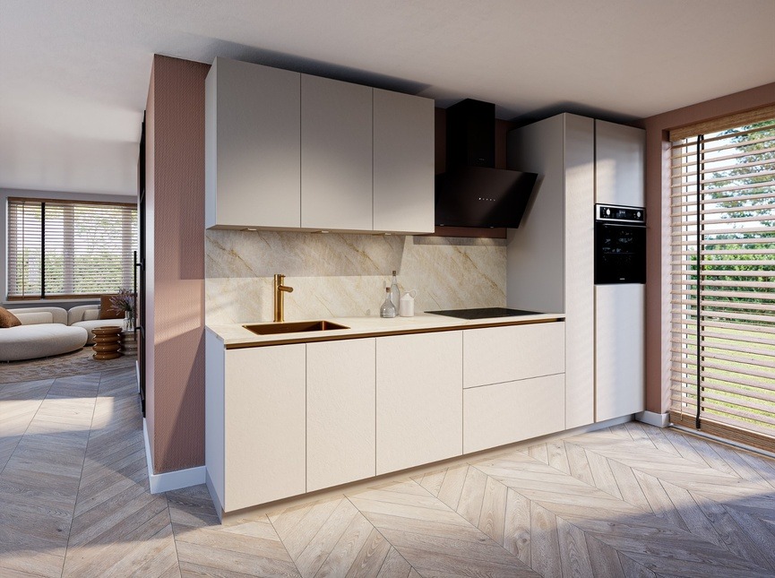 De Louisville Zand is een moderne keuken met een warme, zachte uitstraling. De zandkleurige fronten zorgen voor rust en balans en maken deze keuken perfect voor zowel strakke als sfeervolle interieurs. Dankzij het tijdloze ontwerp blijft deze keuken jarenlang actueel en eenvoudig te combineren met verschillende woonstijlen.