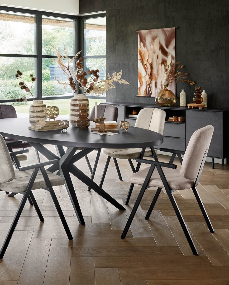 Mascaro is een krasvast en onderhoudsvriendelijk tafelconcept. Mascaro biedt keuze uit diverse kleuren houtdecor en 3 vormen; rond, recht en ovaal.