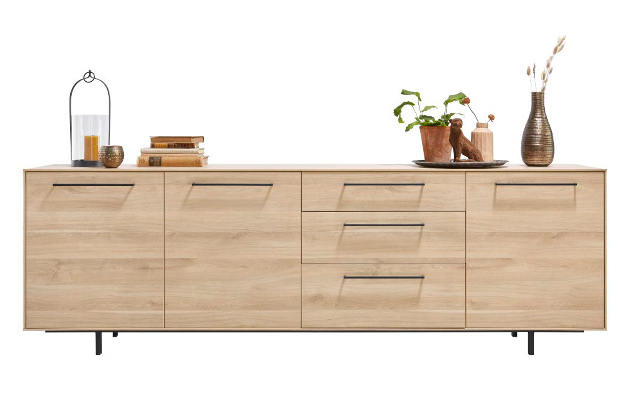 Woonprogramma Ricco in de lichte kleur fresh oak decor is gemaakt van meubelpanelen van een hoge kwaliteit Melamine. Melamine is zeer kras-, slijt- en stootvast, eenvoudig in onderhoud en zeer gebruiksvriendelijk. Dit mooie woonprogramma is dan ook uiterst geschikt voor (jonge) gezinnen. Door de melamine decorlaag en het lichte reliëf krijgt het tv-meubel de uitstraling en het gevoel van echt hout.