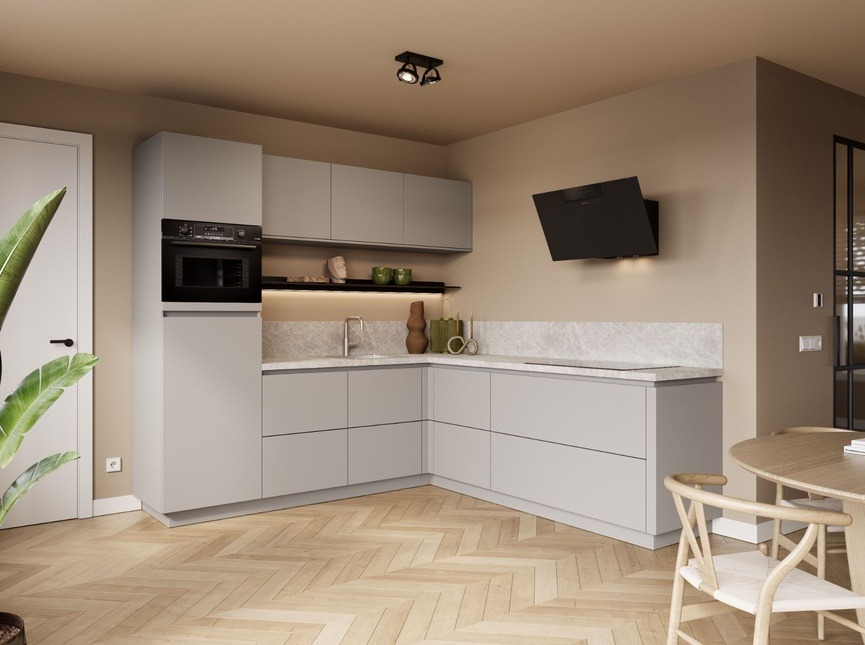 - Tijdloze kiezelgrijze fronten passend bij ieder interieur