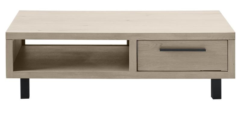 Salontafel met open vak H17 x B64 x D70 cm en is voorgemonteerd. De deuren, kleppen, frames, bovenbladen en zijpanelen zijn van 100% massief eikenhout: m.u.v. rug, inlegplanken, onderste constructiebodem en binnenkant laden, deze zijn van MDF met eiken fineer. Het eikenhout kan in diverse kleuren lak of olie afgewerkt worden. Ook is 2-componentenlak mogelijk deze is stoot- en kras-bestendiger dan de normale lak en biedt daardoor een extra bescherming.
