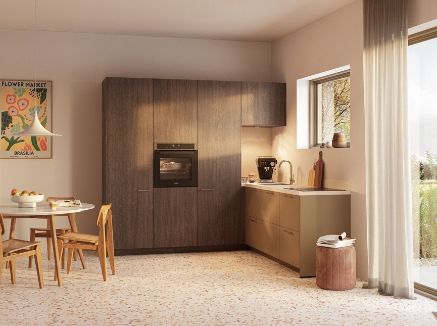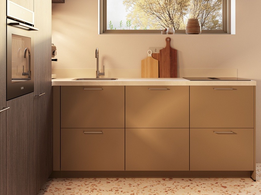 Eenvoud, functionaliteit en warm hout komen samen in de keuken Verdi – Savino. De combinatie van donker eiken Siena met de diepe lakkleur Sephiabruin zorgt voor een stijlvolle retro-uitstraling met een eigentijdse twist. Subtiele chrome accenten versterken het karakter van deze keuken en maken het geheel perfect in balans. Dankzij het tijdloze ontwerp past deze keuken moeiteloos in zowel moderne als klassieke interieurs en is hij volledig samen te stellen in iedere gewenste opstelling en afmeting.